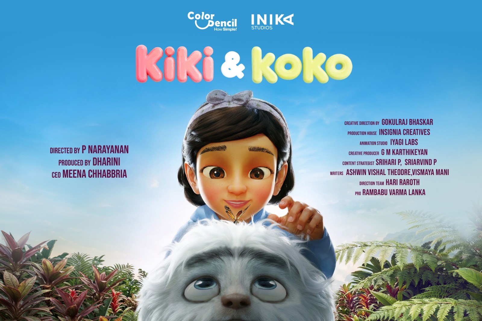 Now, another heart-touching Indian animation film titled “Kiki & Koko” is taking shape. Designed to appeal to children as well as adults who have a childlike heart, “Kiki & Koko” is being presented by Inika Studios. The film is produced by Dharani and directed by P. Narayanan. Child artiste Srinika plays the character of Koko, while Meena Chabria serves as the CEO.