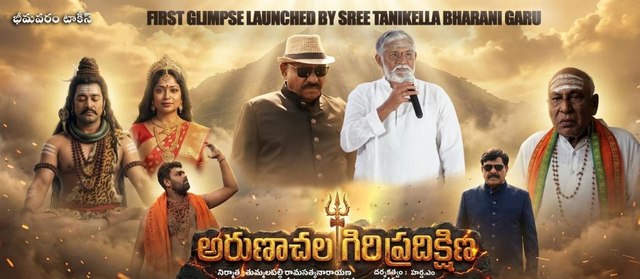 “ఆటగదరా శివా” అంటూ శివతత్వాన్ని ఆవిష్కరించిన ప్రముఖ నటుడు – రచయిత- దర్శకుడు తనికెళ్ళ భరణి… సుప్రసిద్ధ మహిమాన్విత పుణ్యక్షేత్రం అరుణాచలం నేపథ్యంలో ప్రతిష్టాత్మకంగా తెరకెక్కుతున్న “అరుణాచల గిరి ప్రదక్షిణ” చిత్రం ఫస్ట్ గ్లిమ్ప్స్ విడుదల చేశారు. భీమవరం టాకీస్ పతాకంపై ప్రముఖ నిర్మాత తుమ్మలపల్లి రామసత్యనారాయణ నిర్మిస్తున్న ఈ చిత్రానికి వి.ఎఫ్.ఎక్స్ లో సిద్ధహస్తుడైన యువ ప్రతిభాశాలి హర్ష. ఎం. దర్శకత్వం వహిస్తుండగా… సంగీతద్వయం డా. ఎ. జె. సంధ్యవర్షిణి – డా.వి.ఆర్.ఎ. ప్రదీప్ సంగీతం సమకూర్చుతున్నారు. ఈ చిత్రం కోసం స్వరపరిచిన ఓ గీతానికి చింతల శ్రీనివాస్ సాహిత్యం సమకూర్చగా… మధు గాత్రం అందించారు. మదర్ సెంటిమెంట్ తోపాటు బలమైన భావోద్వేగాలతో రూపొందుతున్న “అరుణాచల గిరి ప్రదక్షిణ” అద్భుత విజయం సాధించాలని తనికెళ్ళ కోరుకున్నారు. షూటింగ్ రెండో షెడ్యూలు అతి త్వరలో ప్రారంభమవుతుందని, ఏప్రిల్ లో ఈ సినిమా విడుదలకు సన్నాహాలు చేస్తున్నామని నిర్మాత రామసత్యనారాయణ తెలిపారు!!