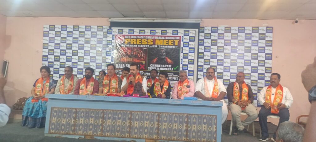 హైదరాబాద్ , మా భూమి టైమ్స్, ఏప్రిల్ 26: రాజా శివాజీ సినిమా పేరులో ఛత్రపతి చేర్చాలని చత్రపతి శివాజీ మహారాజ్ ఫౌండేషన్ వ్యవస్థాపక చైర్మన్ సి ఎస్ చవాన్ డిమాండ్ చేశారు. ఆదివారం సోమాజిగూడ మీడియా సమావేశంలో చత్రపతి శివాజీ మహారాజ్ ఫౌండేషన్ వ్యవస్థాపక చైర్మన్ మాట్లాడుతూ రాజా శివాజీ సినిమా పేరులో చత్రపతి చేర్చాలని డిమాండ్ చేశారు. మే 1న విడుదలకు సిద్ధమైన బాలీవుడ్ చిత్రం రాజా శివాజీ పేరుపై తీవ్ర అభ్యంతరం వ్యక్తం చేసిన సీఎస్ చవాన్ ఈ చిత్రం నిర్మాతలు రితేష్ జెలీనియా పై చర్యలు తీసుకోవాలని కోరారు. చత్రపతి అనే గౌరవ ప్రదమైన బిరుదును తీసివేయడం అనేది అంగీకార యోగ్యం కాదనీ ఇది శ్రీ చత్రపతి శివాజీ మహారాజ్ గౌరవం చారిత్ర చారిత్రిక ప్రాముఖ్యతను తగ్గించే చర్యగా భావిస్తున్నామని అన్నారు. సినిమా విడుదలకు ముందే వెంటనే టైటిల్లో మార్పులు చేయాలని అధికారికంగా డిమాండ్ చేశారు. ఈ సందర్భంగా సిఎస్ చవాన్ నిర్మాతలకు కొన్ని డిమాండ్లు ప్రతిపాదించారు. సినిమా పేరులో చత్రపతి చేర్చాలి శ్రీ శివాజీ మహారాజ్ గౌరవమైన నిజమైన ప్రతినిధిత్యాన్ని నిర్ధారించాలనీ ఈ విషయంలో నిర్మాతలు సంబంధిత అధికారులు నుంచి తక్షణమే స్పందించాలని అన్నారు. దీనిపై చర్యలు తీసుకోకపోతే పౌండేషన్ చట్ట పరమైన చర్యలకు దిగాల్సి వస్తుందని స్పష్టంగా తెలియజేసింది